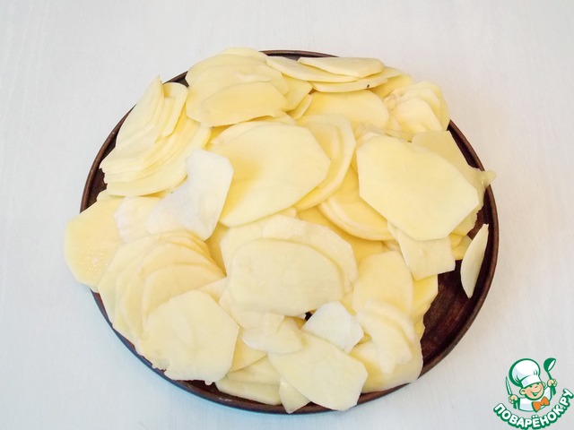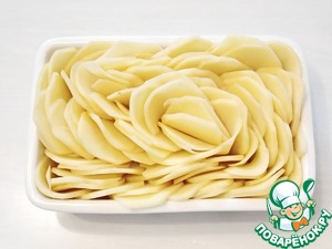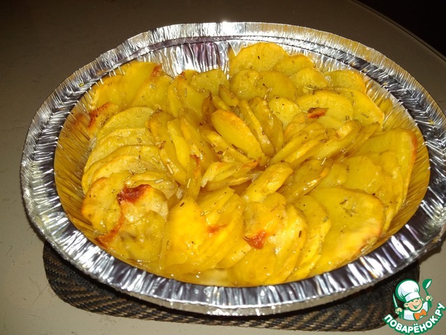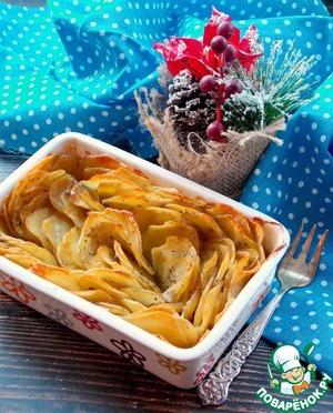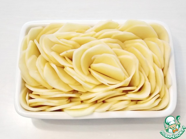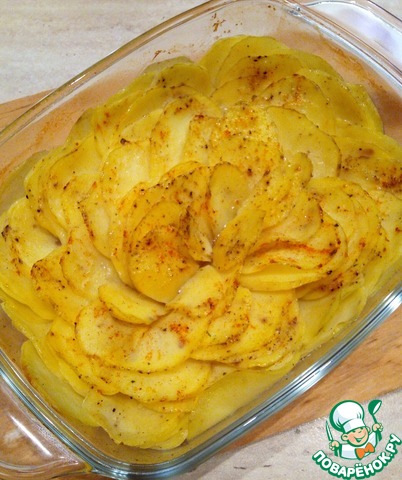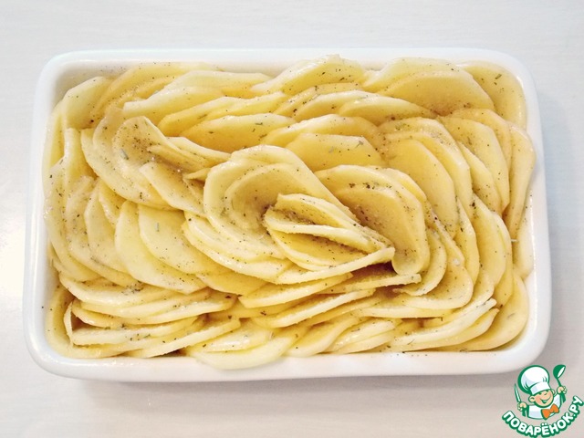 Презентабельная укладка картофеля!Класс!А там, что хочешь заливай в него,всё будет вкусно!!!Отличный рецепт!