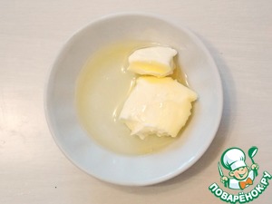 Соединяем растительное и сливочное масла и разогреваем. Перемешиваем до однородной массы.