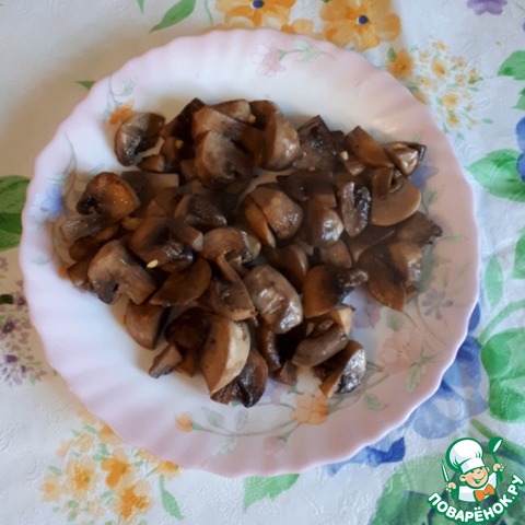 Грибы запеклись, образовавшуюся воду слить, остудить.