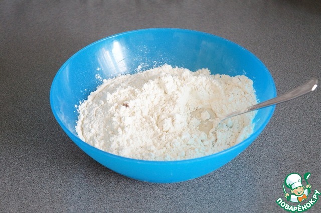 Всыпать муку, немного размешать. Добавить соль, ванильный сахар.