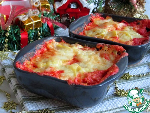 Представляю Вашему вниманию нарядный картофельный гратен со свеклой для новогоднего стола! За счет дополнительного слоя из свеклы, блюдо получается не таким тяжелым для пищеварения, как обычный французский гратен. А узнав, что в составе свекла, дети смотрели с опаской на новое блюдо, однако, попробовав кусочек, попросили добавки, чему я была приятно удивлена) Теперь однозначно рекомендую на новогодний стол для детей и взрослых ;)