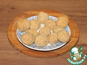 4. Формируем из фарша колобки. У меня получилось 12 штук, обваливаем их в панировочных сухарях.