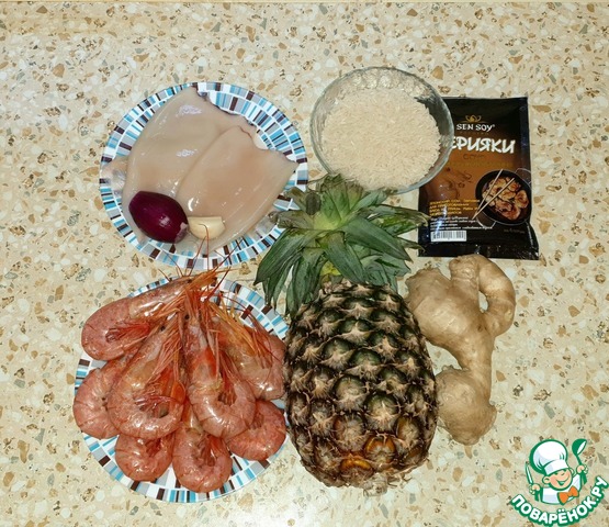 Ингредиенты для «Рис в ананасе с морепродуктами»: