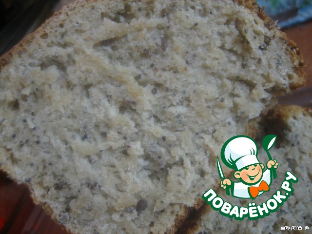 Богатейший по своему составу хлеб. Это букет из 2 -х видов муки и семян кунжута, мака, льна, фенхеля и тмина. Очень вкусный хлеб. Подходит для здорового питания. Прекрасный хлеб для завтрака и начала нового дня. Попробуйте!!!