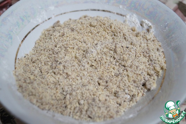 Орехи измельчаем в крошку и смешиваем с крахмалом.
