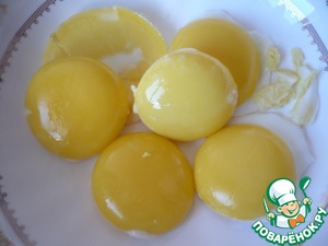 Затем достаем желтки и перекладываем в миску.