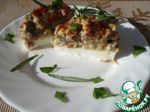 Добавляем жареные грибы с луком.