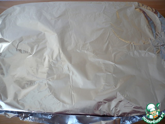Форму с яйцами сверху накрыть фольгой.