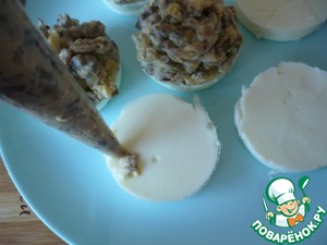 На приготовленное основание из белка, сверху выдавить начинку.