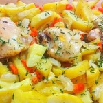Варианты приготовления курицы с картофелем можно перечислять бесконечно. Для этого рецепта вы потратите минимум времени и пока все в духовке, вы можете заняться приготовлением других блюд или заняться своими домашними делами, или просто отдохнуть после трудового дня. Одновременно вы получите полноценный обед или ужин. Замечательный, очень простой рецепт, который вас выручит всегда. А результат порадует- необыкновенно вкусным, сочным, нежным и ароматным блюдом. Курица и картофель просто тают во рту. Обязательно попробуйте!