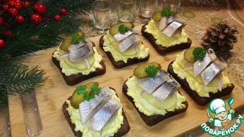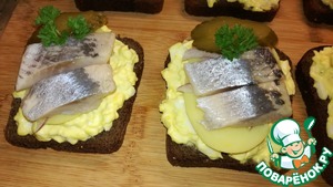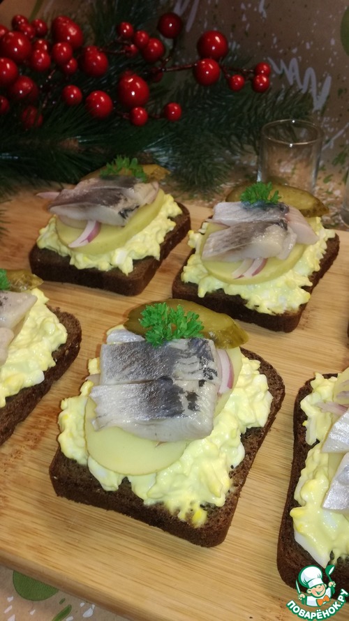 Бутерброды с селедкой прекрасный вариант на праздничный стол. Рецепт такой закуски простой, вкусный, не требующий дорогих ингредиентов, только немного времени.