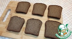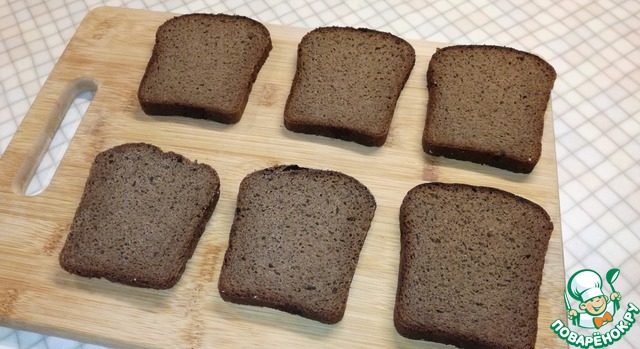 Хлеб порезать тонкими ломтиками.