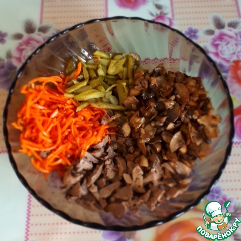 Рецепт «Салат с печенью и грибами»: