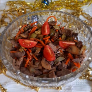 Салат с печенью и грибами