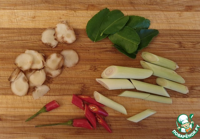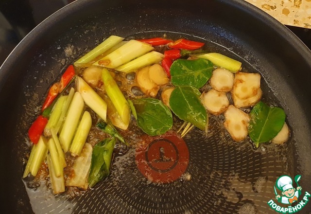 - Цедра лимона (Лучше использовать листья кафирового лайма.) — 1 ст. л.
