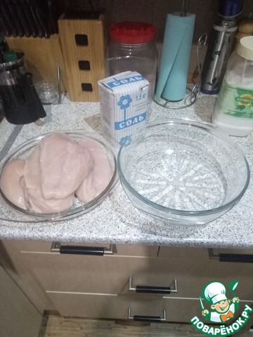 Для приотовления бастурмы было взято 1.5 кг куриного филе и соль. Филе очищаем от пленок и лишнего жира. Оставляем чистейшие кусочки грудки.