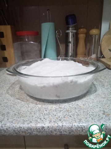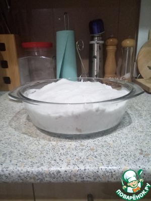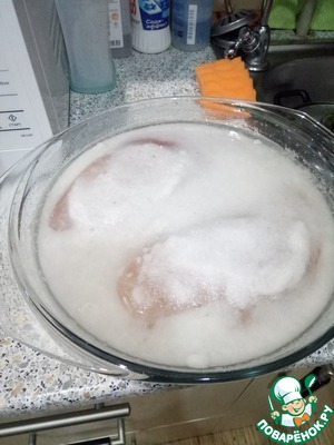 Мясо помещаем в емкость, обильно и не жалея пересыпаем наше мяско солью и оставляем на сутки в холодильнике.
