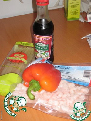 Ингредиенты для «Теплый салат из рисовой лапши и креветок»: