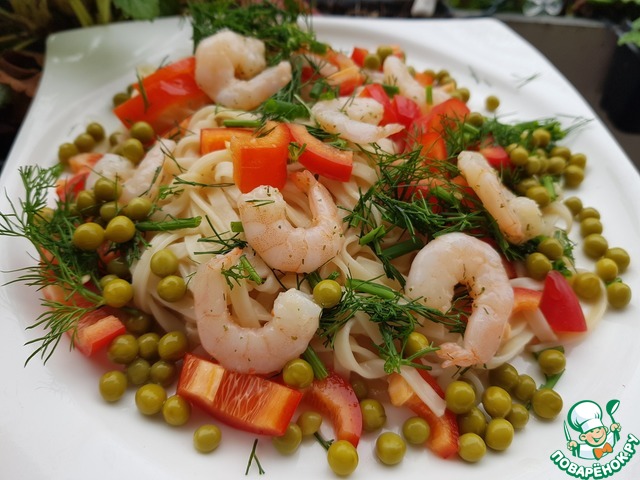 Рецепт «Теплый салат из рисовой лапши и креветок»: