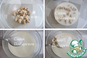 Для приготовления опары - дрожжи раскрошить, влить теплое молоко, добавить сахар и муку.