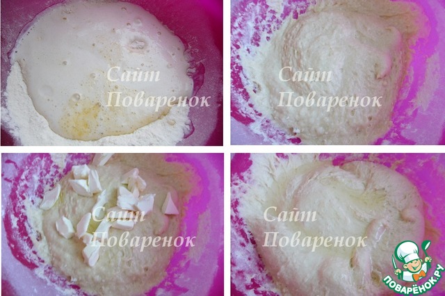 Влить опару.