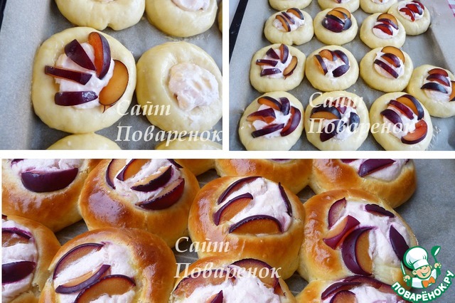 Сдобные ватрушки с творогом и сливой