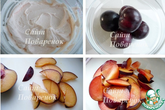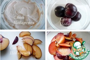 На творог выложить сливовые слайсы. Слегка вдавить в творог.