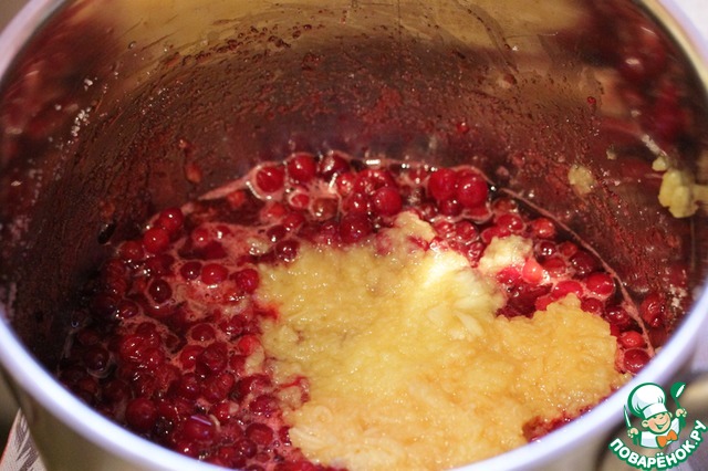 Добавить к бруснике яблоки, натертые на крупной тёрке.