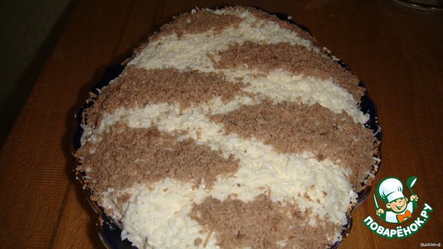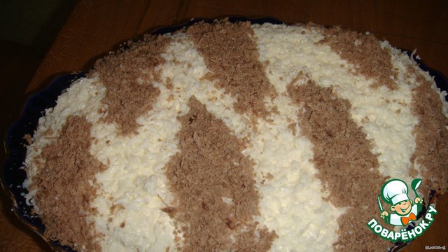 Попробуйте, очень сытный и вкусный салатик. Мои дети визжали от восторга, им очень понравилось что это была"зебра"