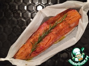 Рыбу (любую, на ваш вкус и по вашим возможностям - горбуша, лосось, форель, кета, сёмга) разделываем. Филе выкладываем в лодочки из пергамента.