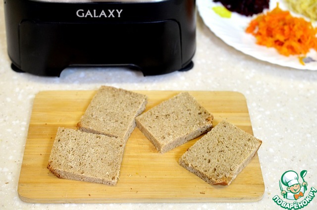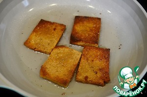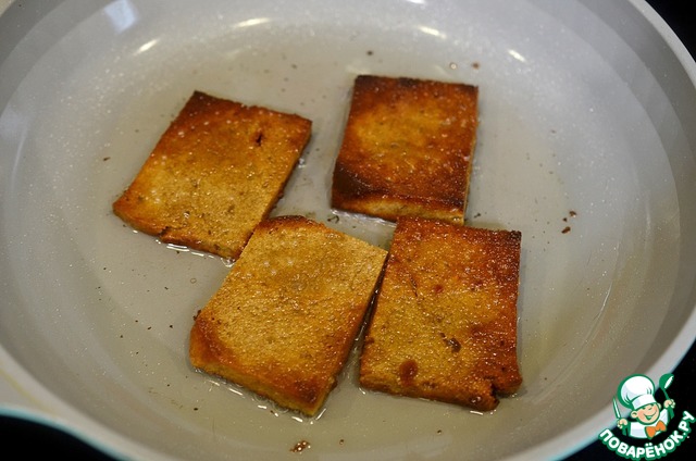 Хлеб нарежьте прямоугольниками или квадратами, корки срежьте.