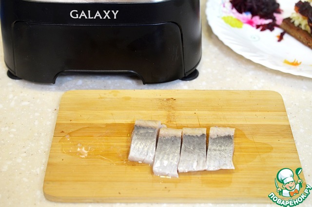 Сельдь нарежьте полосками. Я использую готовое филе сельди.