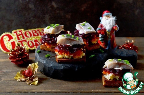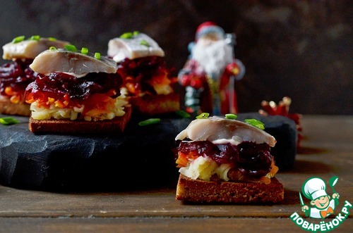 Закуски с сельдью, пожалуй, самые популярные и исчезают со стола первыми. Это блюдо по сочетанию вкусов напоминает Сельдь под шубой, но имеет порционную подачу. Если Вы любите фуршетные закуски, то эта достойная альтернатива традиционному блюду.