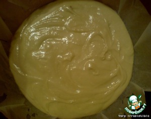 Выливаем в форму, застеленную бумагой для выпечки и смазанную маслом. Выпекаем около 10 минут при температуре 180 градусов.