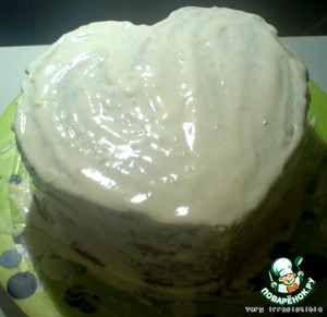 На следующий день вырезаем сердце, кремом смазываем бока и верх.