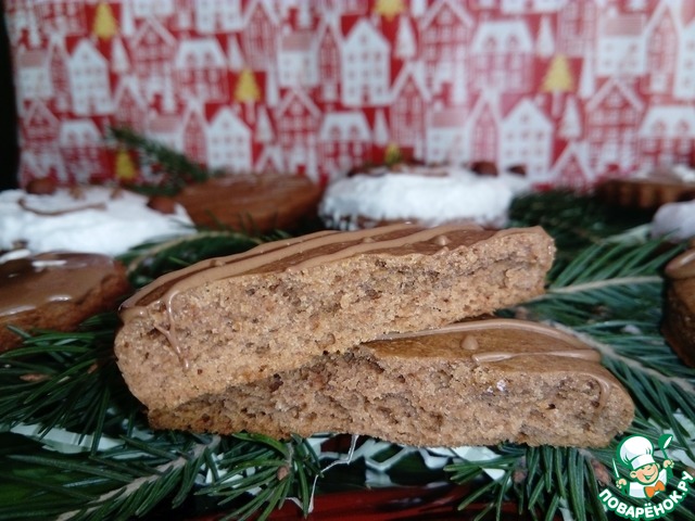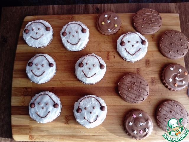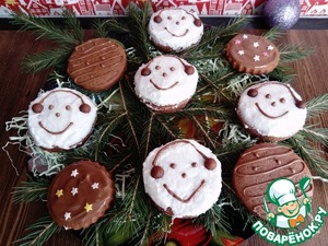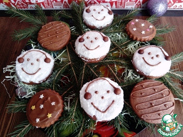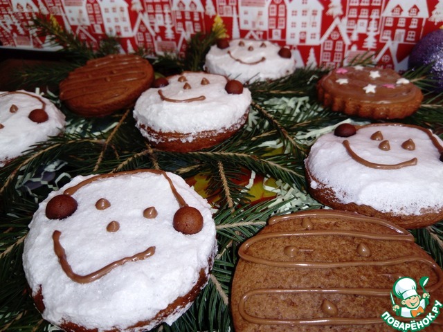 9. Мы для украшения взбили один яичный белок с щепоткой соли и 1 ст. л. сахарной пудры до устойчивых пиков. И покрыли глазурью пряники. Глазки и ротик делали из растопленного шоколада.