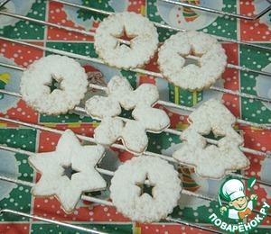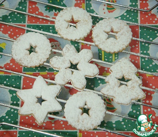 Заготовки с отверстием выложить на решетку и обсыпать сахарной пудрой.