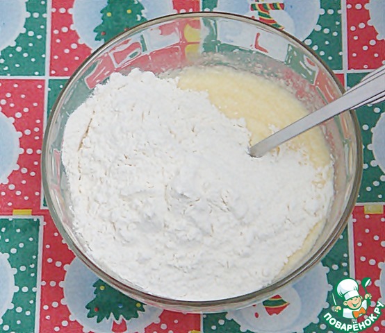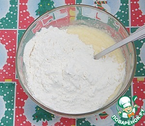 Постепенно всыпать мучную смесь, продолжая работать ложкой.
