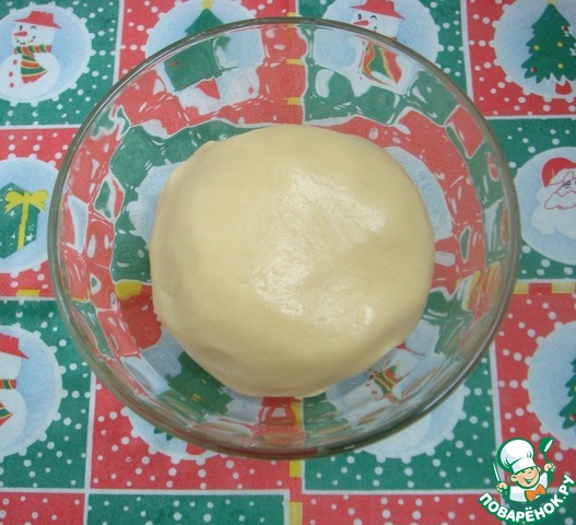 Затем руками замесить тесто. Оно получается эластичным. Очень приятным в работе. Обернуть тесто пищевой пленкой и убрать на 30 минут в холодильник.