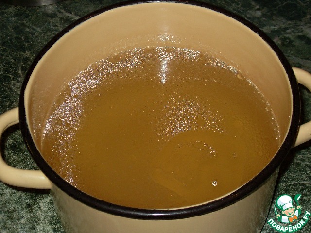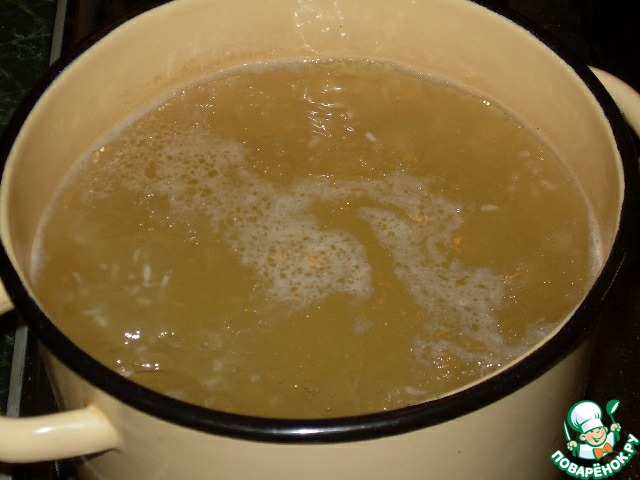 Заранее надо сварить мясной бульон из косточек. Процедить его.
