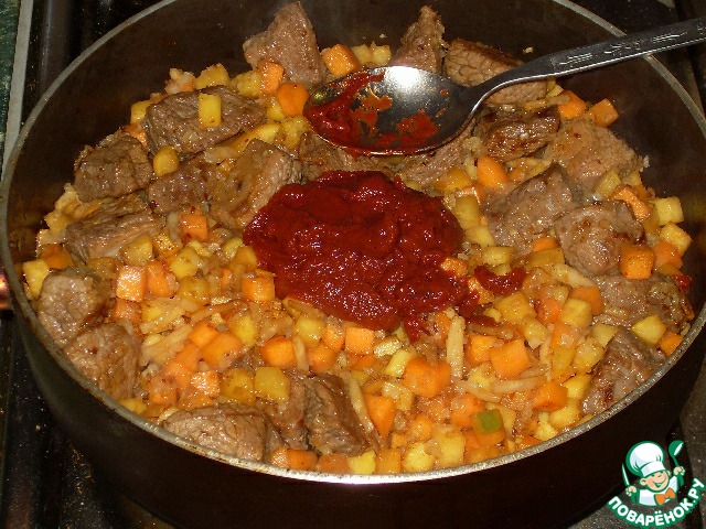 У меня томат-паста, мне с ней суп нравится больше, более насыщенный вкус. -