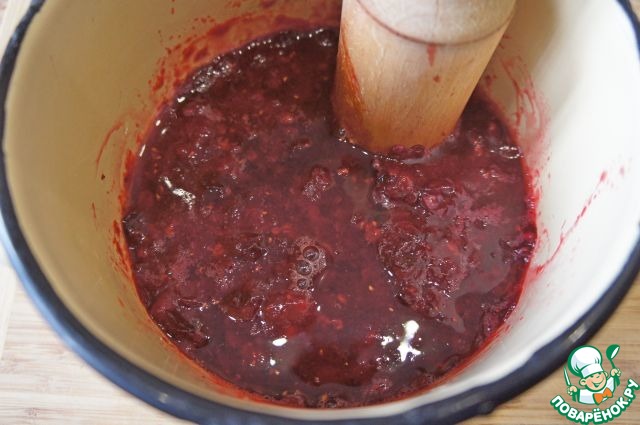 Клюкву промыть, разморозить, если требуется, и тщательно растолочь. Лучше это делать деревянным пестиком, я специально его храню, не выкидываю.