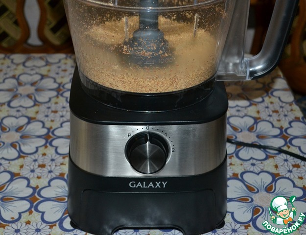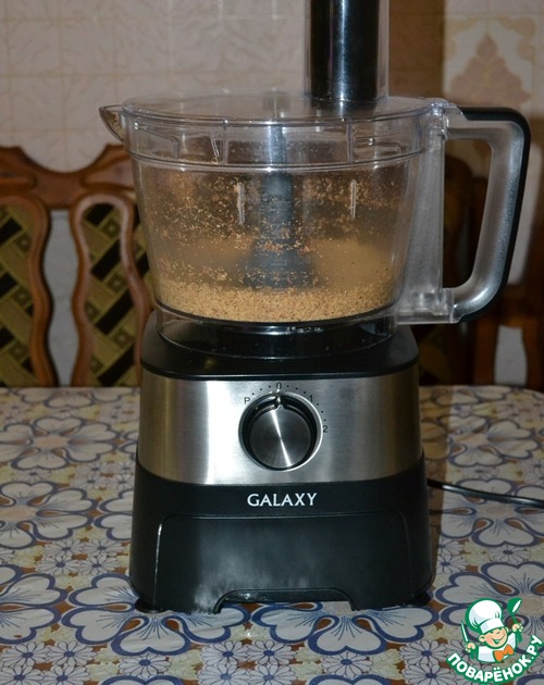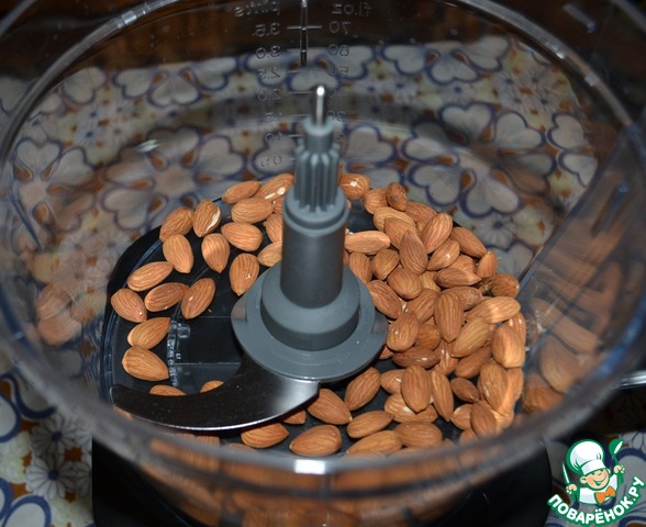 Миндаль засыпать в чашу комбайна. Измельчить, но не совсем в муку. В этом мне помог комбайн GALAXY GL2300. Он очень мощный и за несколько секунд справился со своей задачей!