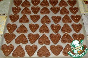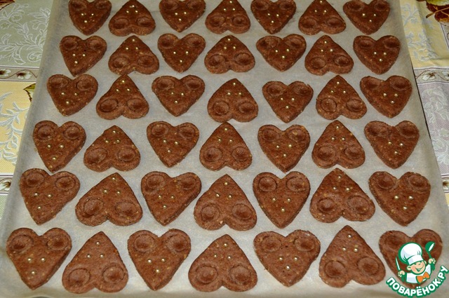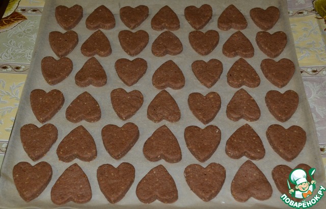 Тесто раскатать и вырезать формочкой сердечки.