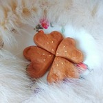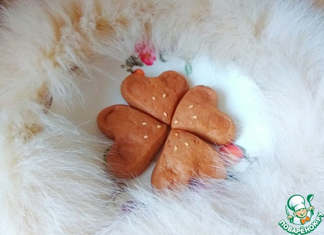 "Ушки" сердечек слегка придавить носиком от воронки и пальцами чуть-чуть оттянуть в стороны. Глазки и носик сделать из шариков кондитерской посыпки или воздушного риса, вдавить их немного в тесто.