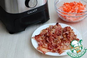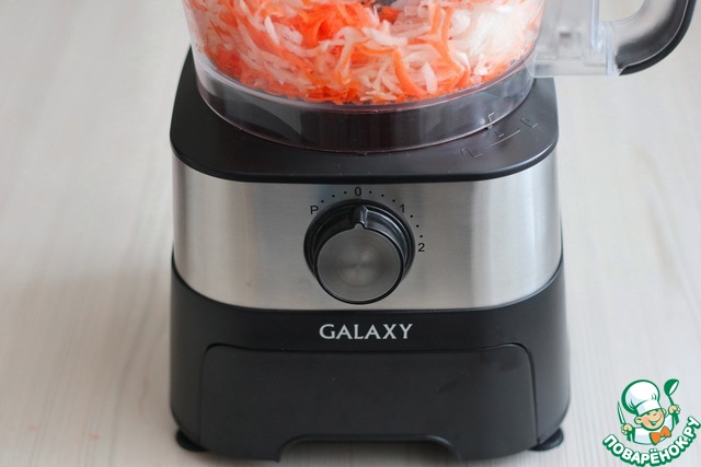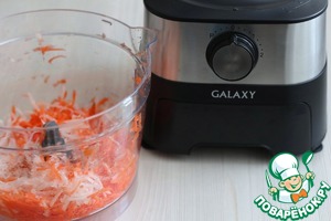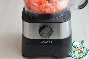 Морковь (1 шт.) почистить, поместить в чашу кухонного комбайна GALAXY GL2300. Нашинковать соломкой.