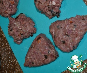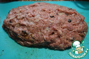 Измельчить мясо и лук на мясорубке, решётка крупная.