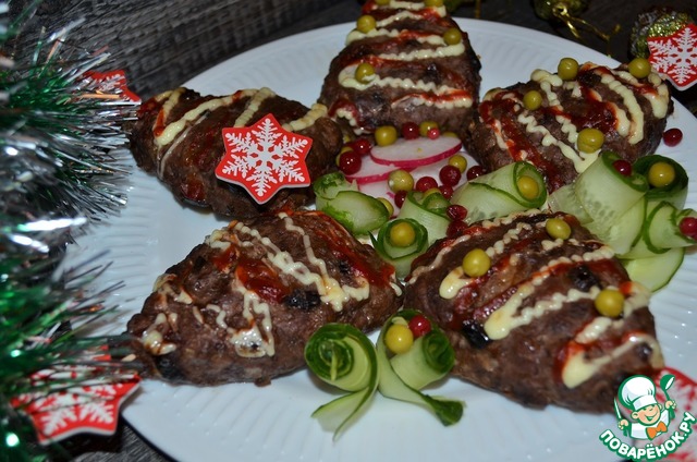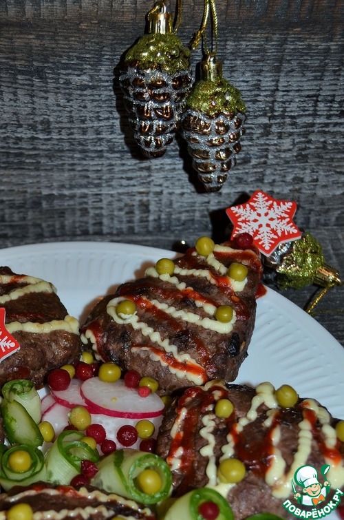 Новогодние блюда почему то хочется готовить особенно красивыми. Ведь праздник то самый волшебный, самый желанный. Надеемся что за порогом Нового года ждут нас чудеса и счастье... Дедушка Мороз приготовил подарки... Порадуем и мы гостей котлетами - ёлочками, угощайтесь.