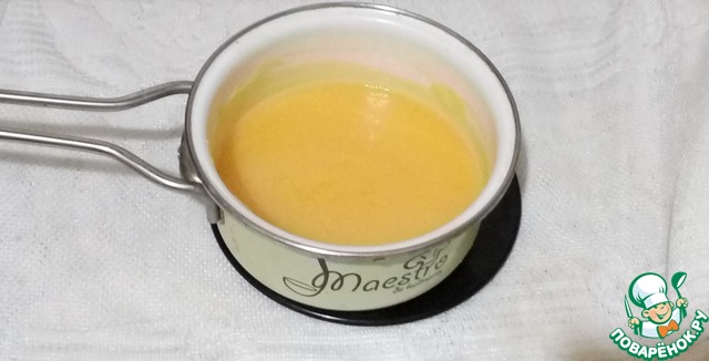 Для крема — выжмите сок из отложенной лимонной мякоти. Получается 150 мл. Нагреваем его.