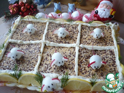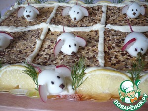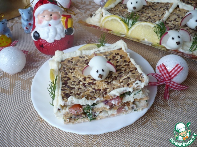 Рецепт «Закусочный торт из печенья "Мышиная семейка"»: